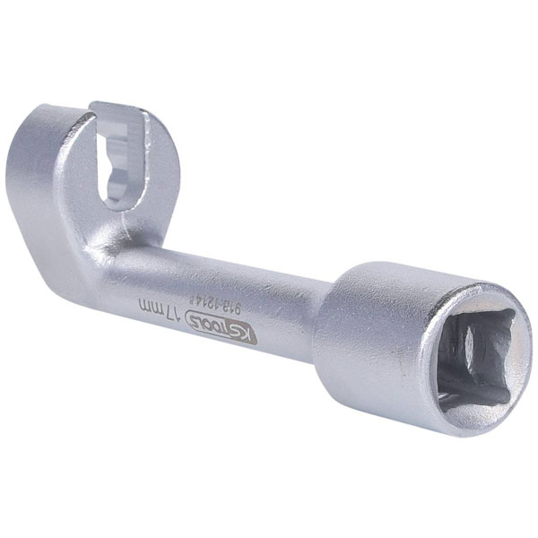 KS Tools manufactures the 913.1214 1/2" open ring socket wrench, designed for precision in automotive repair tasks. Featuring a 17 mm size, it is ideal for tightening or loosening nuts and bolts in car maintenance. This tool is a staple in car repair kits, providing durability and ease of use.