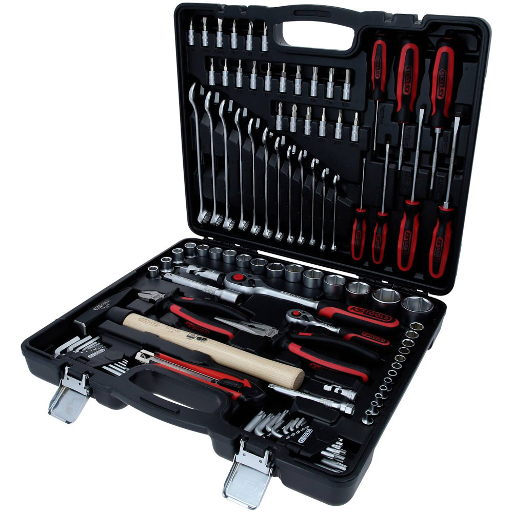 KS Tools manufactures the 917.0797 tool kit, which contains 97 assorted tools. This comprehensive set is ideal for various maintenance and repair tasks. It is suitable for both professional and home use, providing versatility and efficiency.