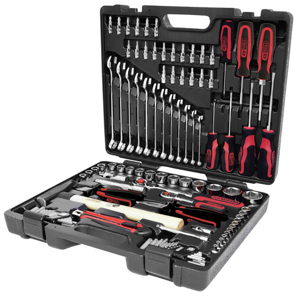 The KS Tools 918.0797 tool kit is a 97-piece set that includes assorted tools for various applications. Known for its durability and precision, this toolkit is ideal for both professional tradespeople and DIY enthusiasts. It is commonly used for mechanical repairs, maintenance, and general purpose tasks.