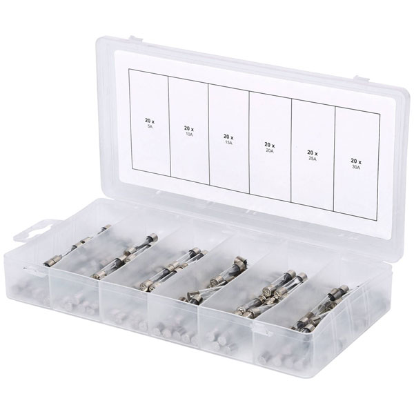 KS Tools 970.0270 Glass Fuses Assortment, 5-30A, 120 Pcs