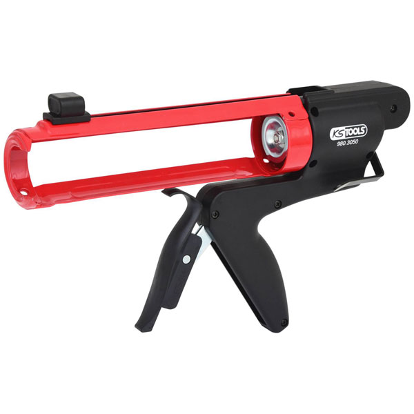 KS Tools manufactures the Cartridge gun 980.3050, designed without a protruding push rod. This 310 ml tool is ideal for precise sealing and bonding applications in automotive repairs. Perfect for mechanics, it ensures optimal performance in tight spaces.
