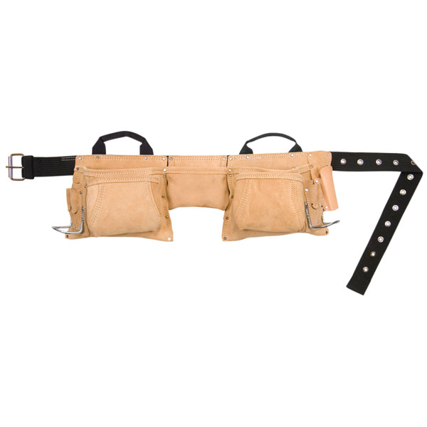 The Kuny's AP-527X Heavy-Duty Leather Work Apron is made from heavy-duty suede leather. It has 12 pockets, including: four main nail and tool pockets, six smaller pockets (for pliers, nail sets, pencils, etc.), a centre pocket for tape measure, nails or other tools and a leather combination square holder.