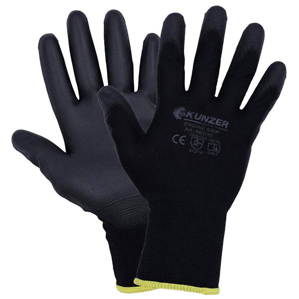 Kunzer 9EG08 are polyurethane protective gloves designed for workplace safety. These gloves, size M, comply with EN 388:2016 and EN 420-2003 standards, offering excellent protection and durability. They are ideal for medium-duty tasks requiring reliable hand protection.