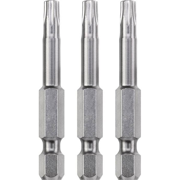 The kwb 121340 Hex bit set includes three T40 Torx bits made of durable steel. These bits are ideal for precise fastening tasks and are commonly used in automotive or furniture assembly. Designed by kwb, they ensure reliability and a secure fit for various Torx screw applications.