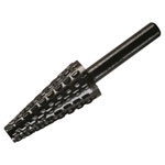 Cone-shaped, carbon steel rotary rasp for use in wood and non-ferrous metals. Ideal for filing, profiling and surface preparation. Suitable for use with most standard electric drills.