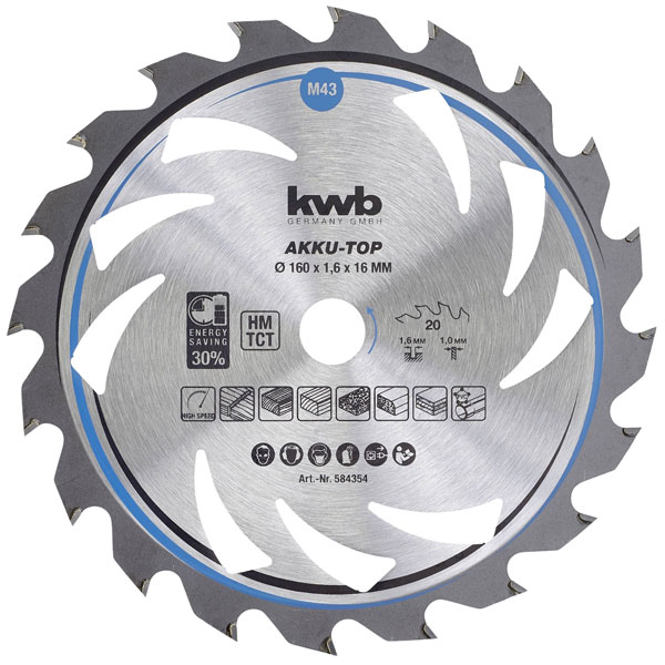 kwb 584354 Carbide Saw Blade 160x16mm 20 cogs cordless suitable