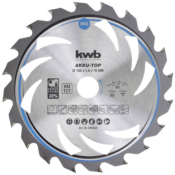 kwb 584554 Carbide Saw Blade 160x20mm 20 cogs for precise clean cuts