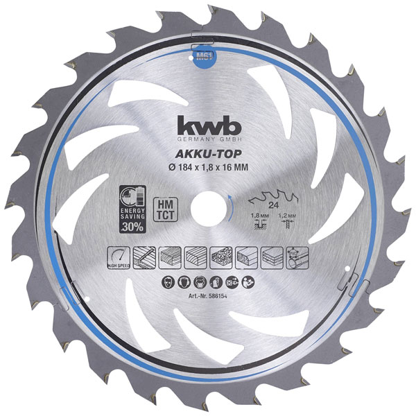 kwb 586154 Carbide Circular Saw Blade 184x16mm 24 cogs precise cuts