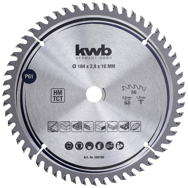 kwb 586168 Carbide Saw Blade 184x16mm 1pc fast fine tear-free cuts