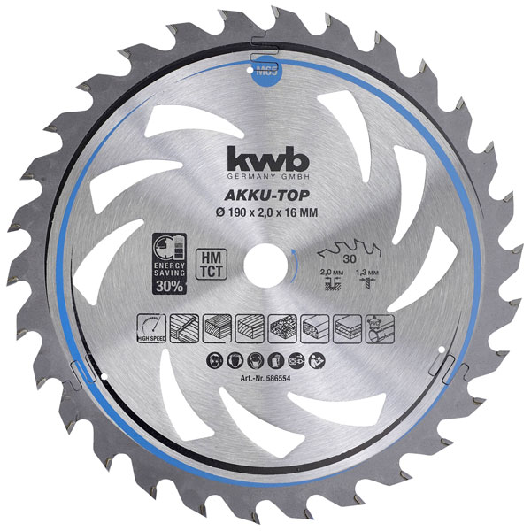 kwb 586554 Carbide Saw Blade 190x16x1.3mm 30 cogs for hand Circular saws