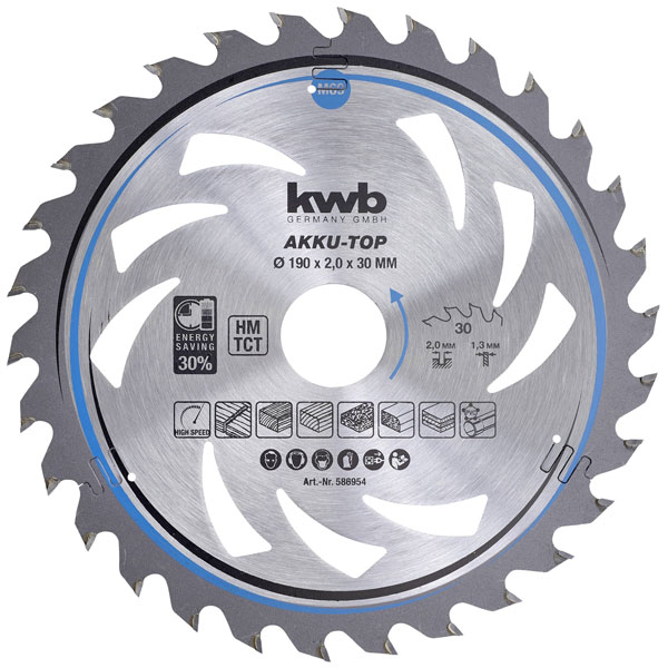 kwb 586954 Carbide Saw Blade 190x30mm 30 cogs precise clean cuts