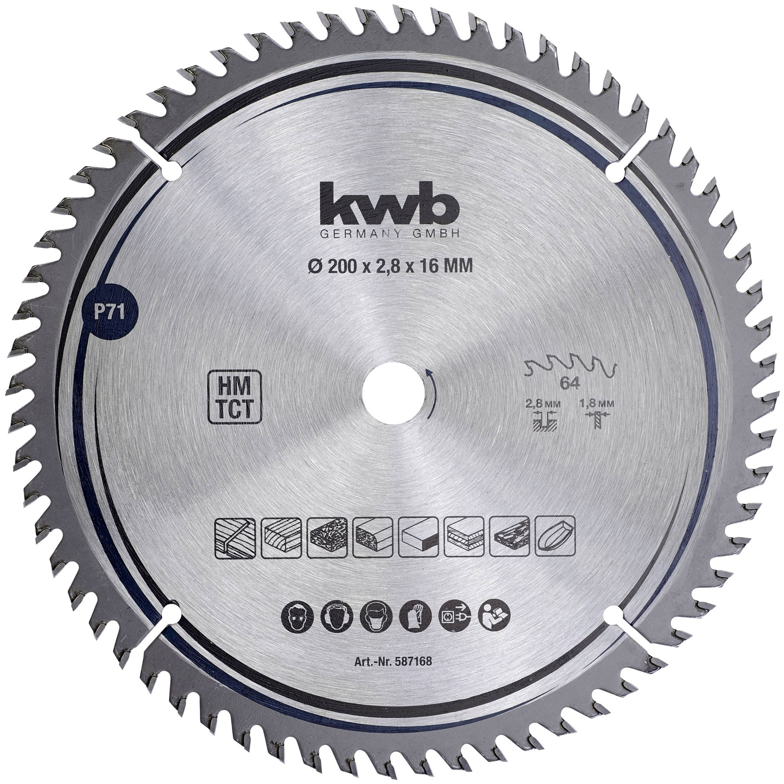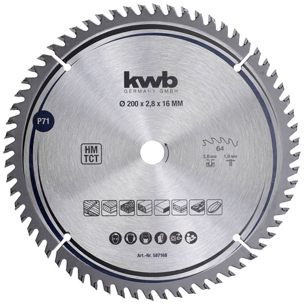 kwb 587168 Carbide Saw Blade 200x16mm fine cuts tear-free edges