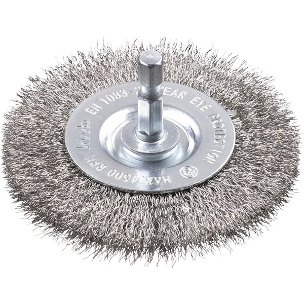 The kwb disc brush is made with corrugated stainless steel wire, offering durability and corrosion resistance. It is ideal for cleaning, deburring, and surface preparation in various industrial and DIY applications. Commonly used with machine tools, this brush efficiently removes rust, paint, and corrosion.