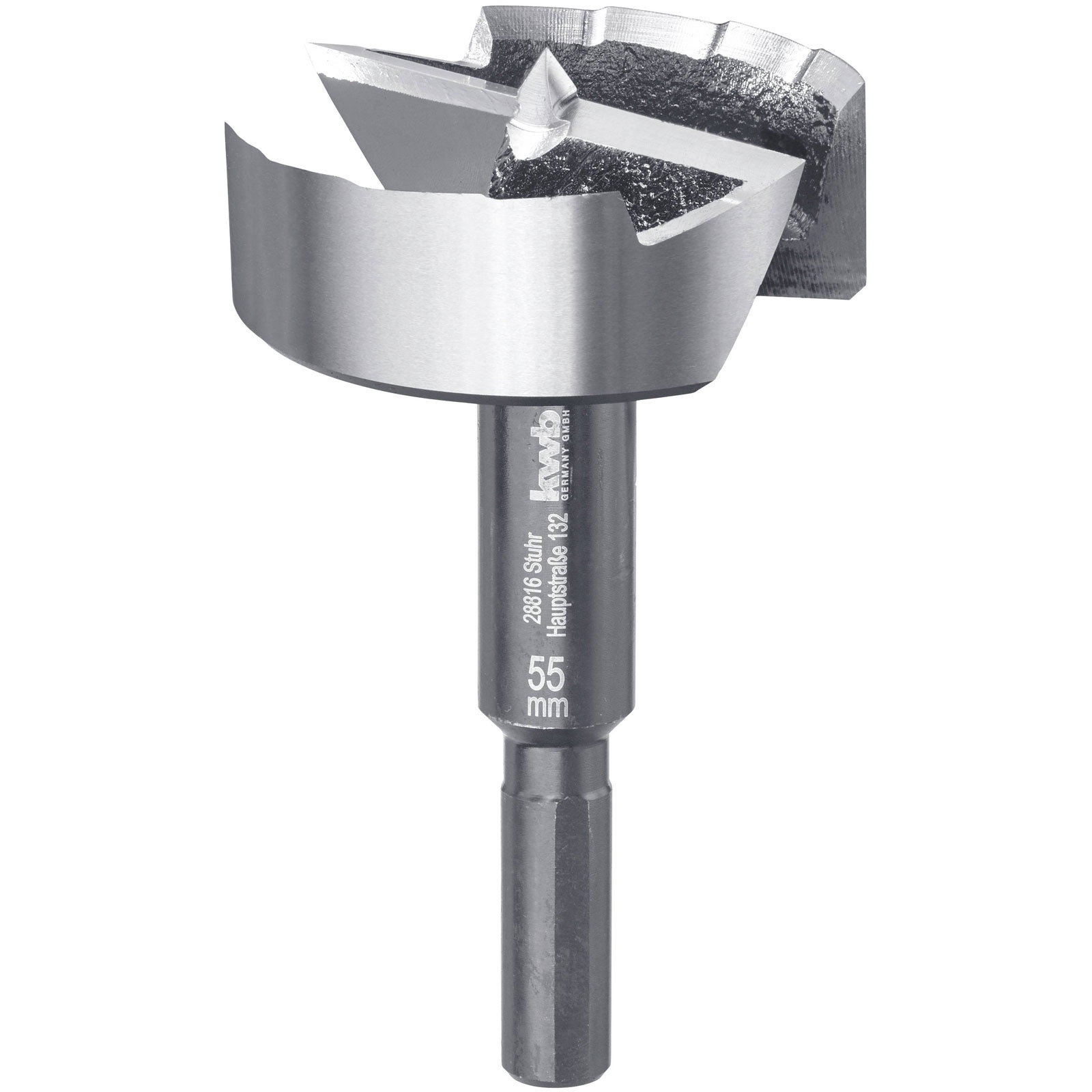 The kwb 706355 Forstner bit is a precision drilling tool manufactured by kwb, featuring a 55 mm diameter ideal for creating clean, flat-bottomed holes. Designed for high accuracy, this single-piece drill bit is optimal for woodworking applications such as crafting hinge holes. Its robust construction ensures smooth operation and long-lasting performance in both professional and DIY projects.
