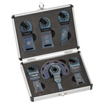 The 7 Piece ENERGY SAVING Multi-Tool Kit comes in a sturdy aluminium storage case and includes various ENERGY SAVING blades for wood, plastic and metal work, all with patented flutes or holes for optimum performance.