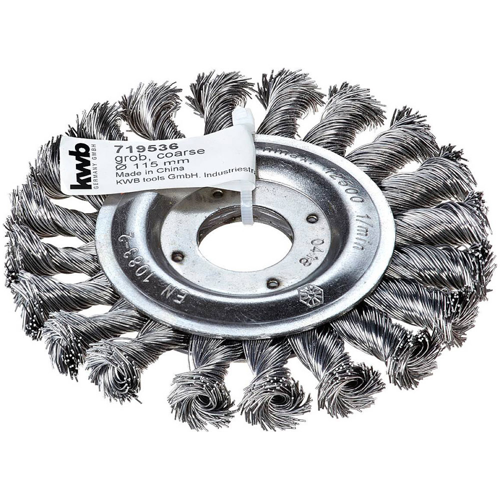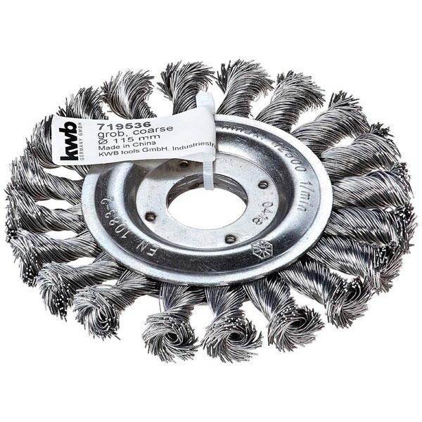 The kwb AGGRESSO-FLEX glass brush features tapped HSS steel wire and is designed for use with angle grinders. This round machine tool wire brush is durable and efficient for cleaning and surface preparation tasks. Ideal for removing rust, paint, and dirt from metal surfaces.