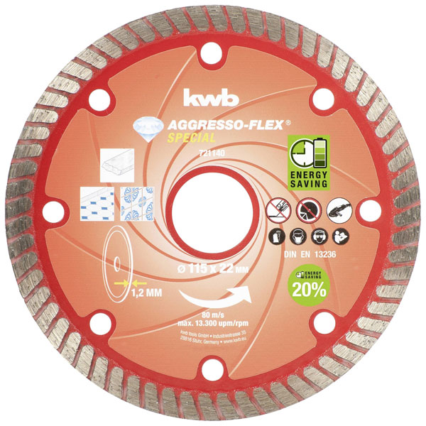 kwb 721140 cutting disc 115mm dia 7mm thick for Concrete/granite/marble