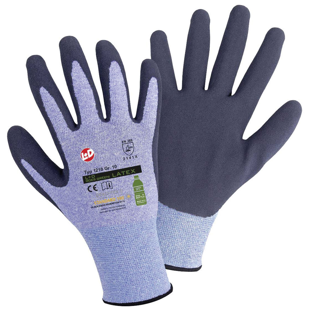 L+D produces a range of latex knit gloves in various sizes that are certified under EN 388 and meet additional standards, offering reliable hand protection for different applications.