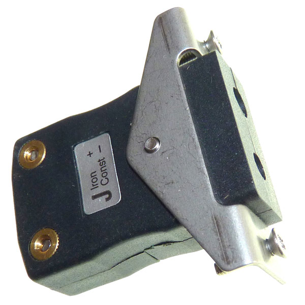 This type J standard-sized panel-mounting socket thermocouple connector has a mounting bracket and is designed to be used in industrial applications. The connector has round socket pins made from true thermocouple alloys, reducing errors.