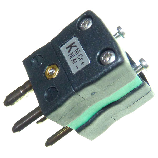 This duplex (2-channel) type K standard-sized free plug thermocouple connector is designed to be used in industrial applications. The connector has solid, round pins made from true thermocouple alloys, reducing errors.