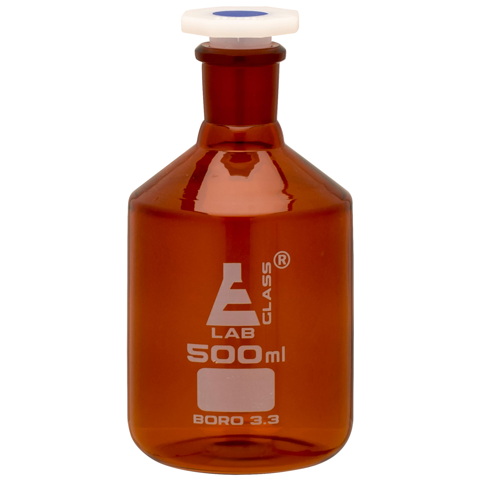 LabGlass Amber Reagent Bottle Narrow Mouth, Polypropylene Stopper 500ml, 24/29