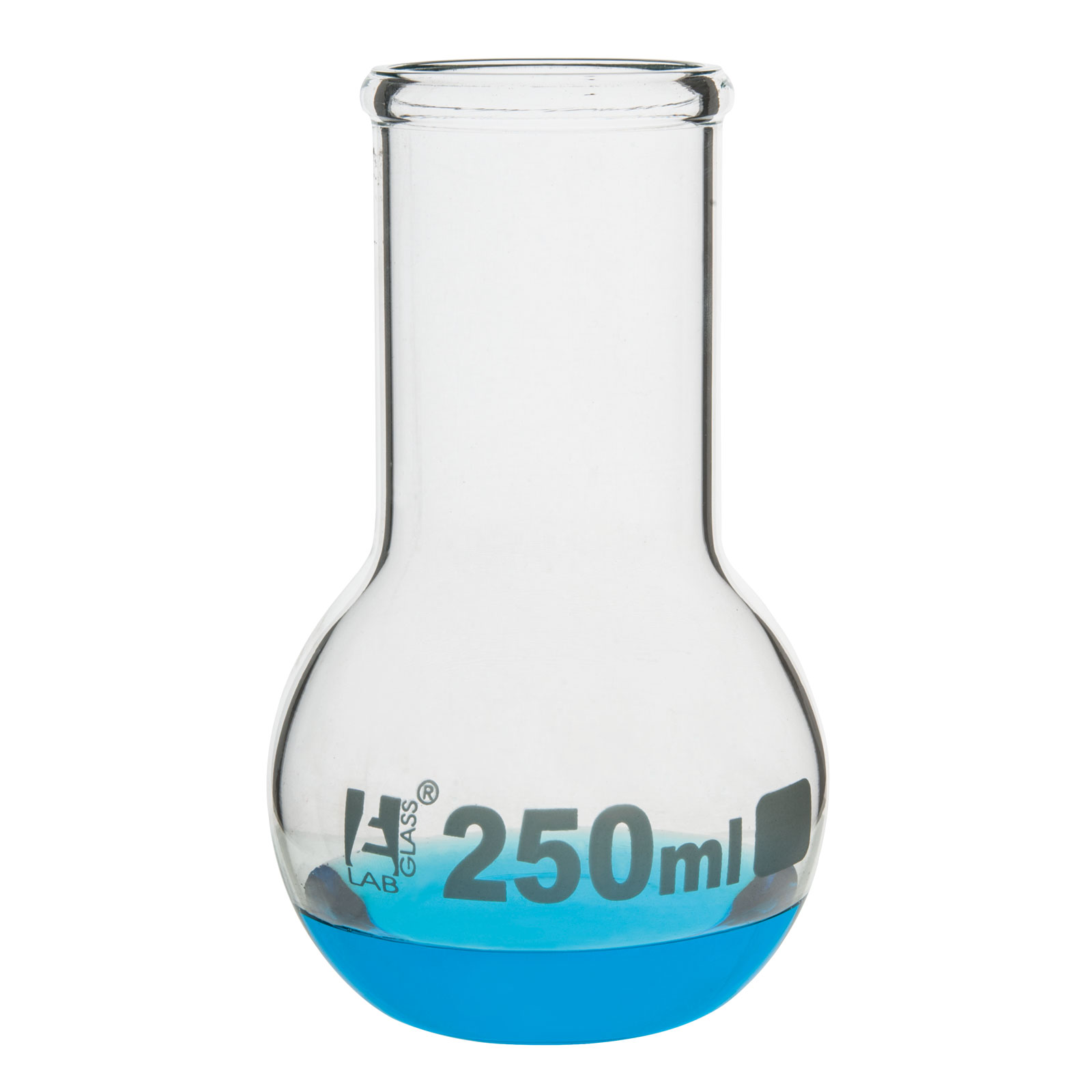 LabGlass Flat Bottom Boiling Flask Wide Neck with Beaded Rim 250ml Pack of 12