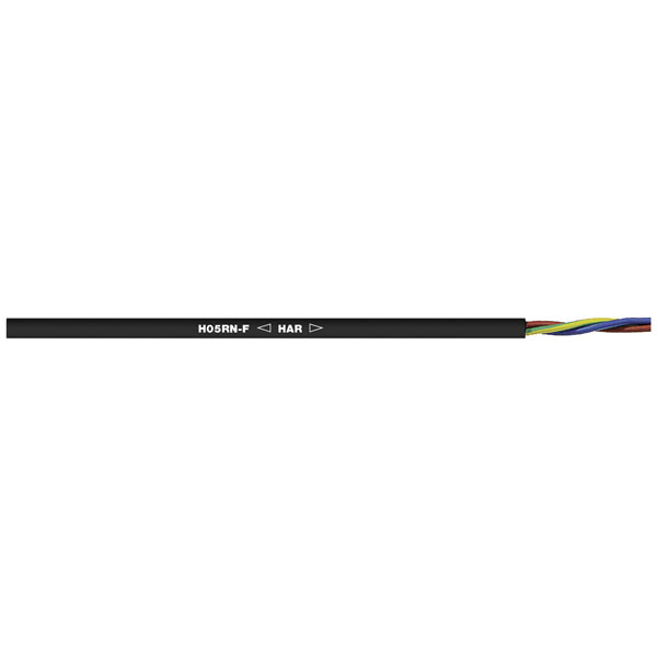 Medium Rubber hose wires for use on handheld devices with and light workshop devices with medium usage in dry and damp rooms as well as outdoors. Setup data: Fine-wired Cu-strand, wire insulation made of rubber, stranded wire, in different colours or number printing in black wire according to VDE 0293, outer covering made of poly-chloroprene rubber, ozone-resistant, flame-resistant.