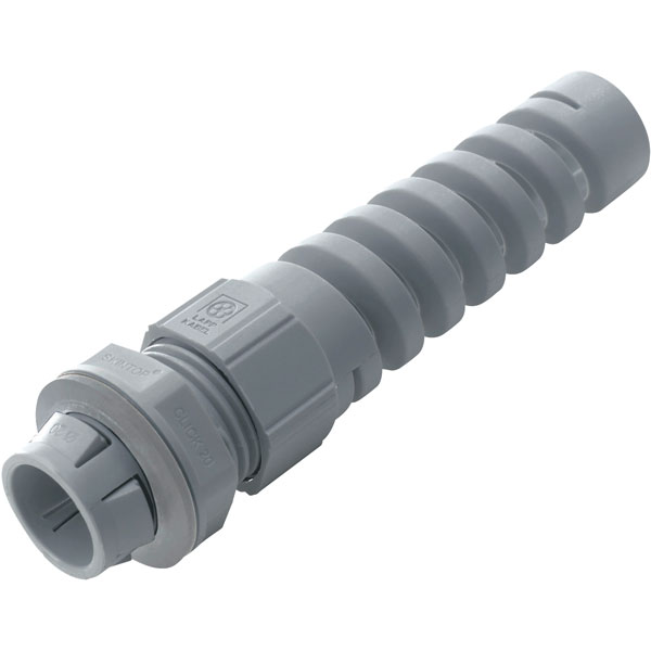 This LAPP SKINTOP® CLICK BS spiral cable gland is a reliable bending protection for cable conservation and functional reliability. This spiral gland is ideal to protect flexible cables. There are fewer parts, and the locking nut is no longer required.