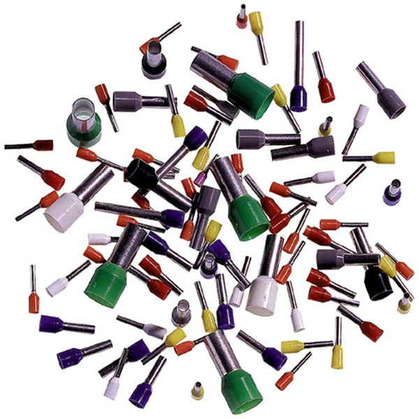 Wire end sleeves with insulation for control cabinets, according to DIN color code or german color coding, CSA certified, halogen-free. Easy to slide on flex through funnel shaped widening allows. .