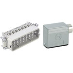 A pre-packed kit from the LAPP EPIC® H-A 16 rectangular connector range. The kit contains a 16-pin insert with wire protection and a matching die-cast side entry hood.