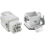 A pre-packed kit from the LAPP EPIC® H-A 4 rectangular connector range. The kit contains a 4-pin female insert and a matching, grey thermoplastic panel-mount base.