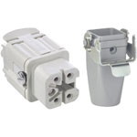 A pre-packed kit from the LAPP EPIC® H-A 4 rectangular connector range. The kit contains a 4-pin female insert and a matching, grey die-cast cable coupler hood.