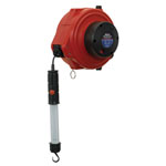 The ideal solution for workshops dogged by the problem of trailing wires. The system can be wall or ceiling mounted and has a strong ratchet mechanism to ensure long service. The cable is retracted by a simple pull and release action. The cable reel has a thermostatic trip switch to prevent overload. Both lead lamp and cable reel are fitted with on/off switch for extra convenience. All models fitted with step down transformer, from 230V input, to 12V output.