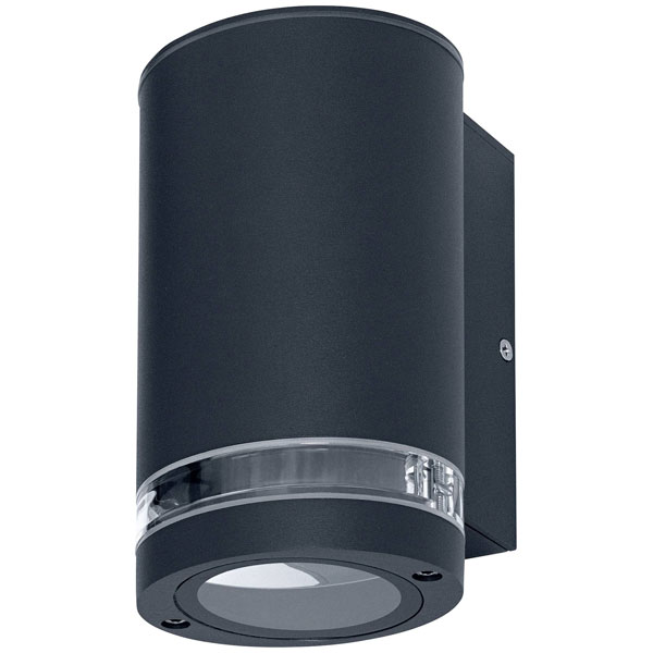 Classic lamps with GU10 base and light emission up and down. Product features: Indirect lighting. Housing material: Aluminum. Housing colour: RAL 7016. Protection class: IP44 Product advantages: High flexibility in the choice of the bulb thanks to the GU10 socket. Easy and quick installation. Application areas: Radiation of facades. Entrance lighting. Terraces, balconies. Road lighting. Approach slabs. Technical equipment: Complete mounting and connection accessories included. No bulbs included.
