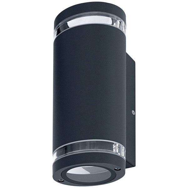 Classic lamps with GU10 base and light emission up and down. Product features: Indirect lighting. Housing material: Aluminum. Housing colour: RAL 7016. Protection class: IP44 Product advantages: High flexibility in the choice of the bulb thanks to the GU10 socket. Easy and quick installation. Application areas: Radiation of facades. Entrance lighting. Terraces, balconies. Road lighting. Approach slabs. Technical equipment: Complete mounting and connection accessories included. No bulbs included.