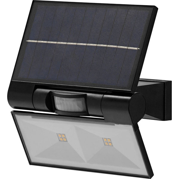 Solar-powered floodlights with daylight and motion detectors. Solar-powered LED outdoor lights. PIR motion detector and daylight sensor. Battery charging by means of solar cell. Battery technology: Lithium-ion. Demand-oriented lighting and energy saving by means of motion and daylight sensor. Simple setting of daylight and motion detection by pressing a button. Energy-efficient through LED technology. Easy and quick installation. Energy-saving alternative to traditional floodlights.