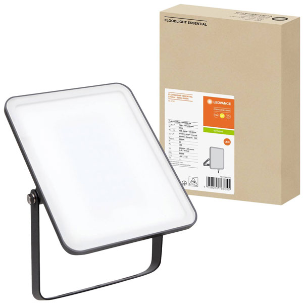 LEDVANCE 4058075768055 Essentials Floodlight. This powerful 30W LED floodlight emits a warm white glow (3000K) that enhances security and ambiance in your garden, driveway, or patio. With its energy-efficient technology, you'll not only brighten your environment but also save on electricity costs.