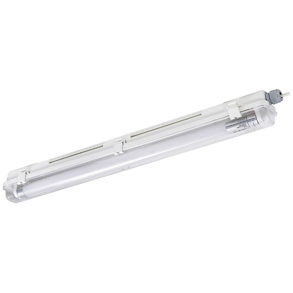 Simple installation through optimized space for mounting brackets and easy to open compartment. Very efficient LED tube made of glass, in order to reduce the proportion of conventional environment-damaging plastic. The lamp, made of recycled plastic, contributes to the reduction of CO2-emissions and plastic waste.