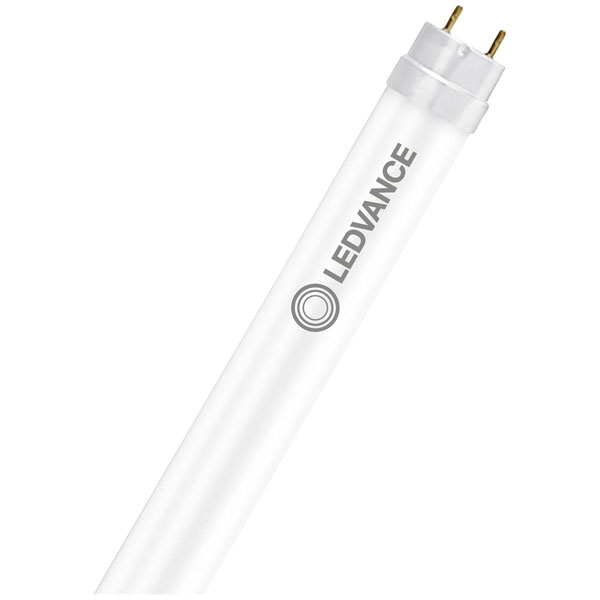 Powerful LED tubes with extra Hohem light current for electromagnetic ballasts (conventional/VVG) and mains voltage, splinter protection. LED replacement for conventional T8 fluorescent lamps with G13 socket in conventional ballast lights or connected to mains voltage. Flicker arm according to EU 2019/2020 (SVM under 0.4 / PstLM under 1). Glass bulb with splitter protection for applications such as in the food industry. ENEC 10 VDE mark. For especially homogeneous illumination. Durability: Up to 75,000 h. Protection class IP20 Mercury-free and RoHS compliant. No hanging thanks to glass tube. Split protection thanks to special PET coating. Support in the implementation of HACCP concepts from production to product presentation. Very high switching strength. High luminous flux for demanding lighting tasks. Simple, fast and safe replacement of lamps without rewiring. Energy savings of up to 62% (as compared to T8 fluorescent lamp). Full brightness without warm-up phase, therefore Ideal suitable in combination with sensors. Also suitable for low temperature operation. General lighting in ambient temperatures from -20…+50°C. Lighting in industrial manufacturing. Traffic zones and corridors. Supermarkets and department stores. Industry. Technical features: Suitable for use with low-loss and conventional ballasts.