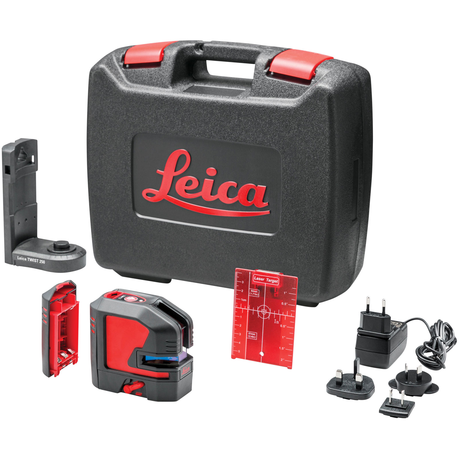 Supplied with: 1 x Li-ion Power Pack, 1 x Charger, 1 x Alkaline Battery Tray, 1 x Twist 250 Mounting Bracket, 1 x Reflective Target Plate, 1 x Hard Case and 1 x 3 Year Warranty Card.