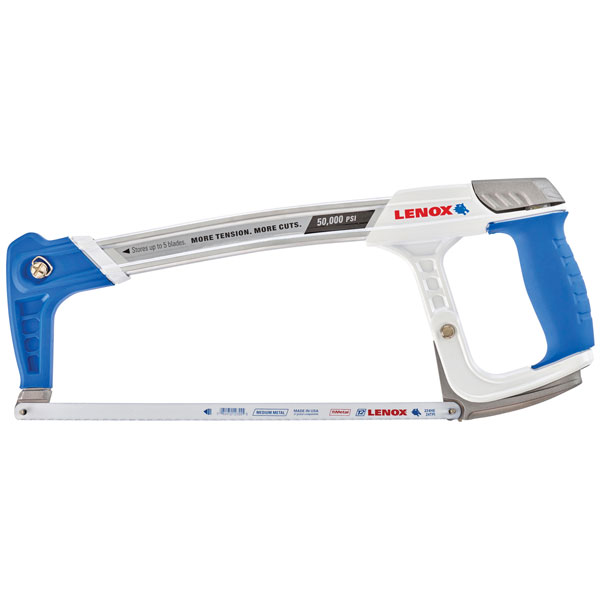 The LENOX® HT50 Hacksaw has a unique I-Beam construction that allows the blade to tension up to 50,000 psi, resulting in fast, straight cuts. Fitted with rubberised handles for confident and comfortable handling, even in wet or cold environments. The frame provides convenient storage for up to 5 blades. It can also be converted to a jab saw and accepts any LENOX® reciprocating saw blade.