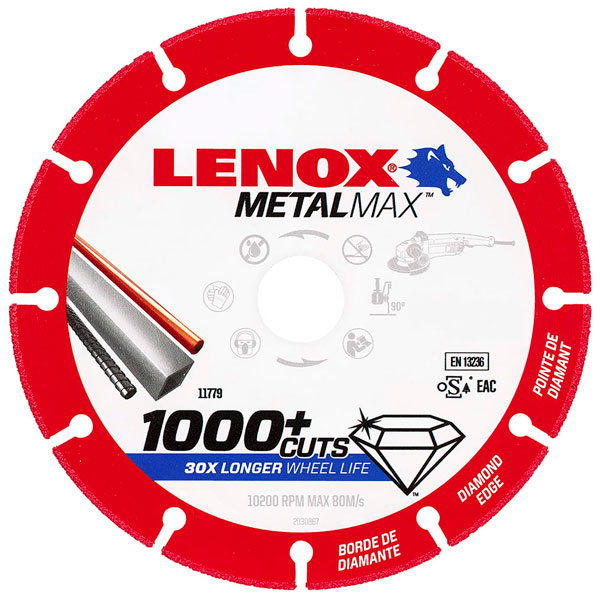 LENOX METALMAX™ Cut Off Disc is made for extreme durability and maximum work efficiency. Generates less odor and dust residue as the wheel does not wear down like bonded abrasives. Visible sparks originate only from the material being cut.