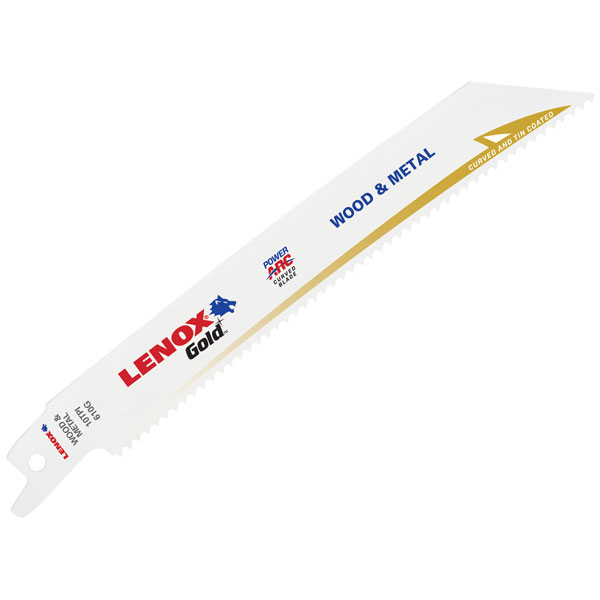 LENOX® Gold® Metal Cutting Reciprocating Saw Blades have an aggressive blade design that optimises the blade's cutting angle for faster cutting in a wide variety of materials. The POWER ARC™ curved blade delivers up to 2x longer life vs traditional straight LENOX® Reciprocating Saw Blades.
