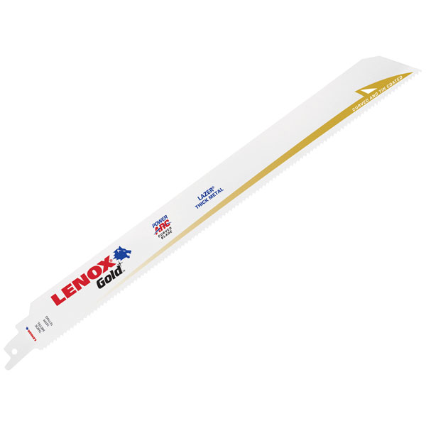 LENOX® Gold® Extreme Metal Cutting Reciprocating Saw Blades have an aggressive blade design that optimises the blades cutting angle for faster cutting in a wide variety of materials. The POWER ARC™ curved blade delivers up to 2x longer life vs traditional straight LENOX® Reciprocating Saw Blades.
