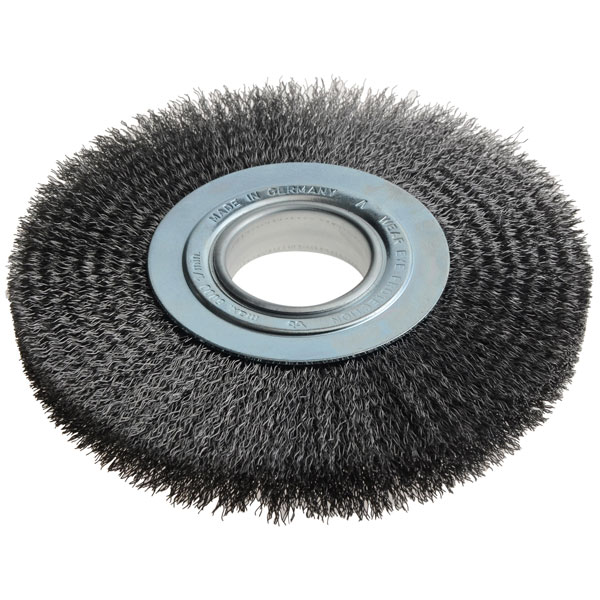 The Lessmann Wheel Brushes are filled with crimped wire and are used for obtaining different surface finishes. For the removal of rust, paint and dirt, for roughening, de-burring. Stripping or polishing.