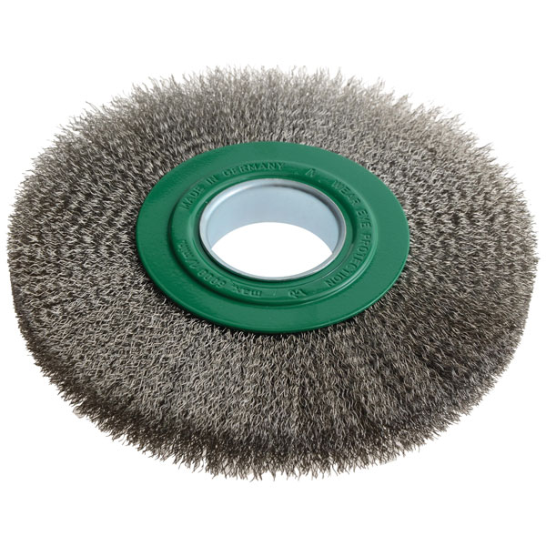 The Lessmann Wheel Brushes are filled with crimped wire and are used for obtaining different surface finishes. For the removal of rust, paint and dirt, for roughening, de-burring. Stripping or polishing.