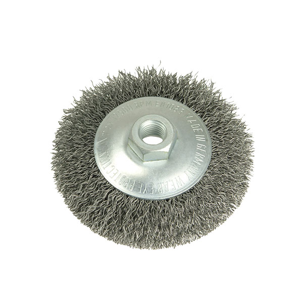 Lessmann 422.177 Conical Bevel Brush 100mm x M14 Bore, 0.35 Steel Wire