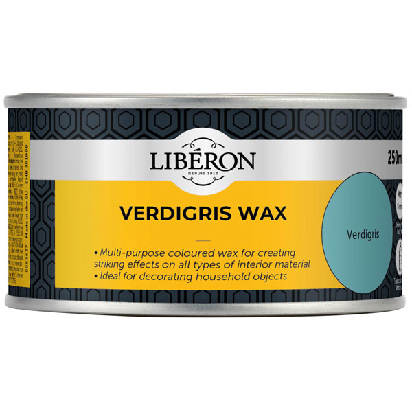 Liberon Verdigris Wax is a multi-purpose coloured wax for creating striking effects on all types of interior material such as wood, metal, stone, plastic and plaster. Recommended as a special effects wax, it gives green hues of oxidised copper and brass and can be worked into moulding, bronzes, papier-mache, alabaster and carvings. Ideal for decorating household objects, it buffs to a soft sheen, and can also be applied as a wax finish to bare or coloured wood.