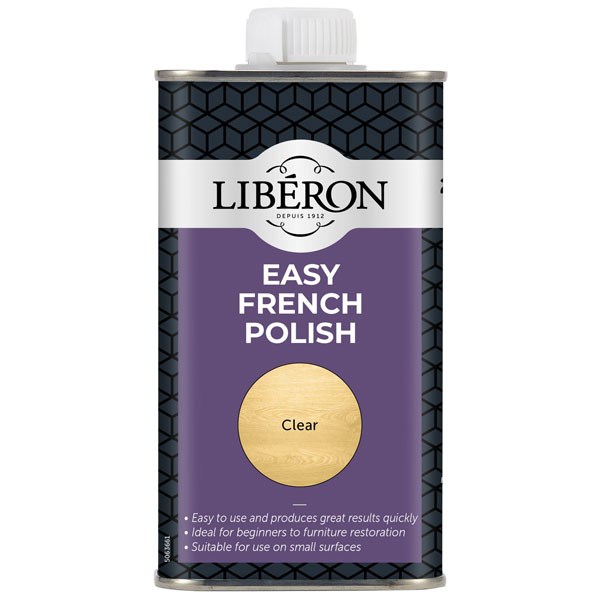 Liberon Easy French Polish contains a blend of shellac and resin to enhance the wood’s natural finish, and produces great results quickly. Suitable for use on small surfaces measuring 1m² or less. Ideal for furniture, carved woodwork and artefact's in rare or exotic woods. Its clear colour provides a natural effect and it is ideal for beginners to furniture restoration.
