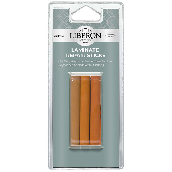 Liberon Laminate Repair Sticks can be used to fill medium to deep scratches and imperfect joints on interior laminate flooring. Repairs can be made without sanding, and they can be blended together for a closer colour match. They can also be used to fill nail and pin holes on laminate and wood surfaces.
